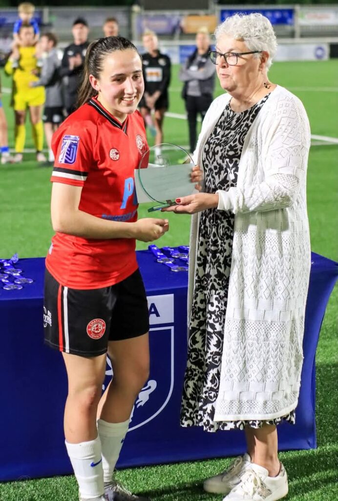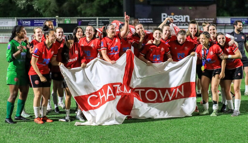 There were several flash points in the opening half as the game seemed to get away from referee Allen, and that pattern continued after the break but as the Chats’ far superior fitness began to tell in the later stages, Amelia Woodgate’s brilliant cross was superbly powered home at the back post by Lottie Sharp to seal the Trophy and not even sub-Gabby Howell’s stoppage time goal could recover the contest for the holders and there is a now new name on the Kent Women’s Cup.