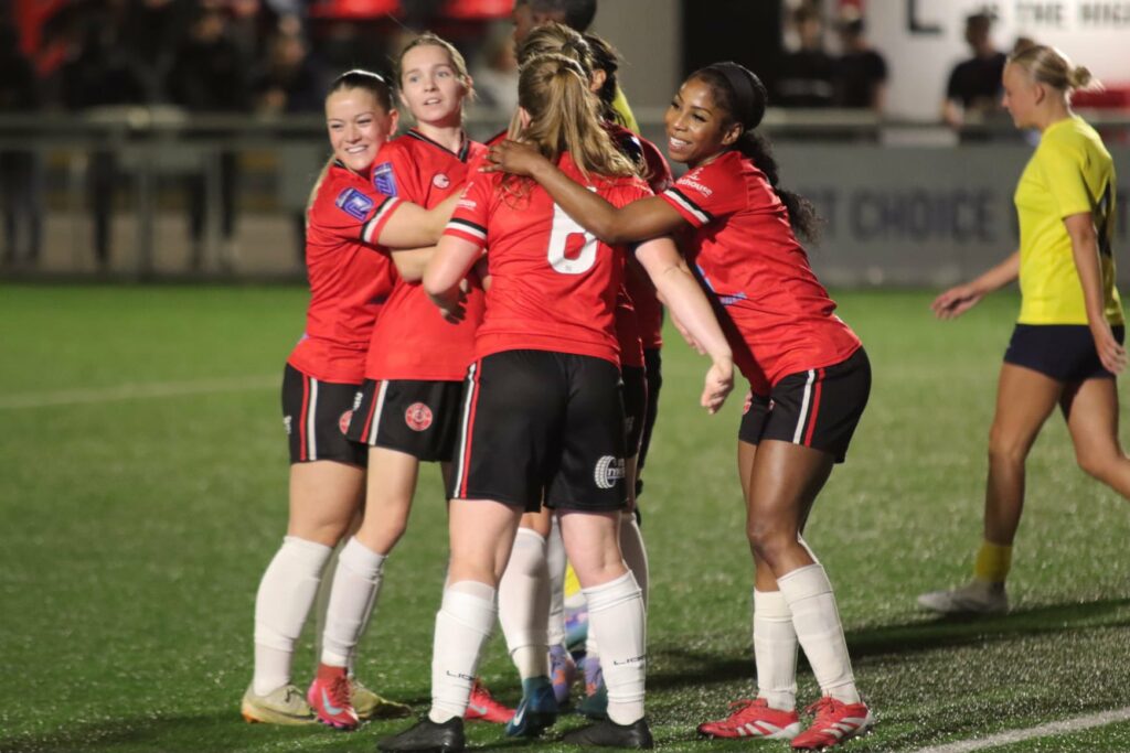 Chatham Town Women maintained their one hundred percent record, but only just after a controversial second period against MK Dons Women which saw them finish with nine players on the pitch and left back Lucy Jones in goal.
