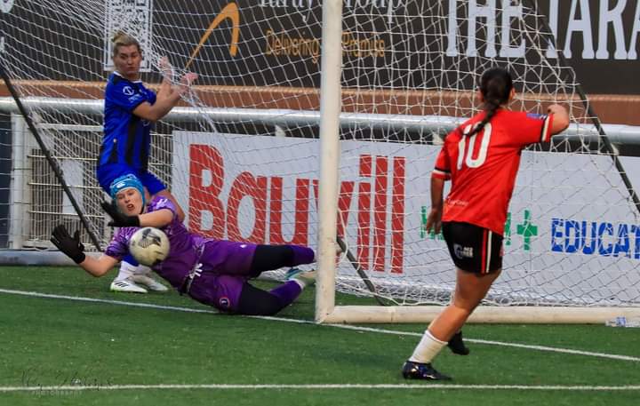The Chats had the better of the opening with both Woodgate and Lottie Sharps sending teasing crosses toward the Dorking goal that didn’t miss by much. The home side eventually got the goal they deserved and it was down to some great play from King, who collected the ball just outside the Dorking box and threaded the most delightful ball through for her young strike partner to run onto and bury past the advancing Tea Oldroyd in the goal.