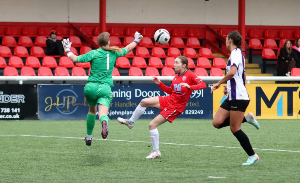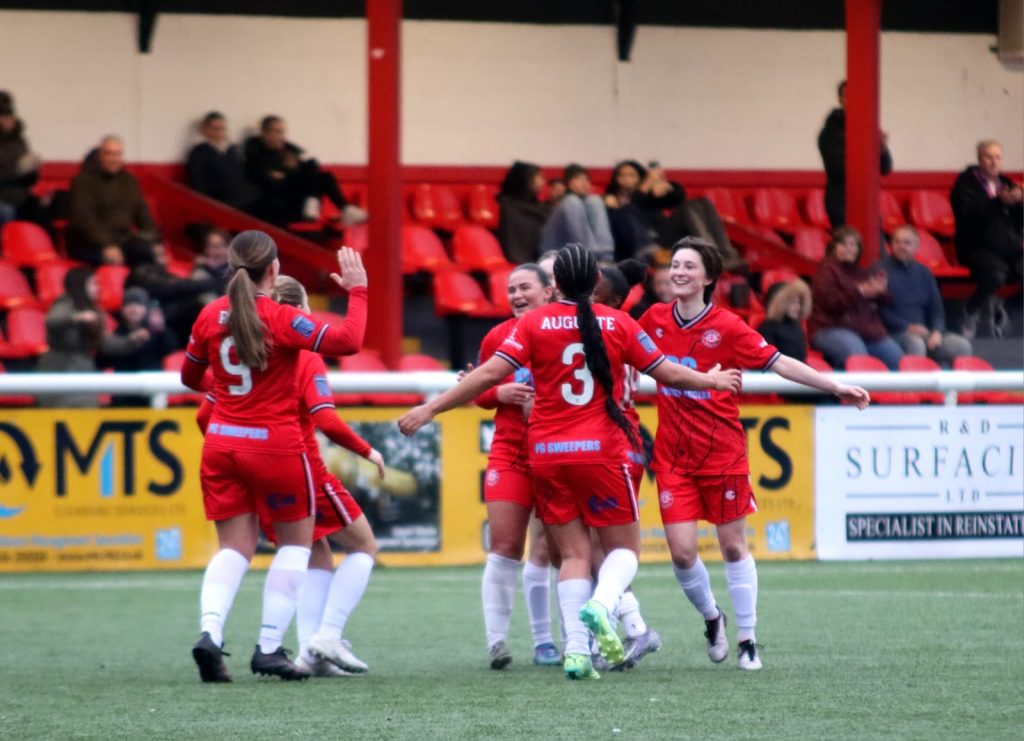 Chatham Town Women took their incredible Adobe Women’s FA Cup form into the Women’s National League as they ripped the London Bees to shreds at the Bauvill on Sunday afternoon.