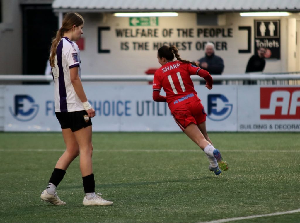 Hynes went close for the home side with a drive that was just too high whilst keeper Simone Eligon pulled off a remarkable recovering save after a poor clearance was driven back towards the home goal by Sandy Martins only for Eligon to save at the foot of her left post.
