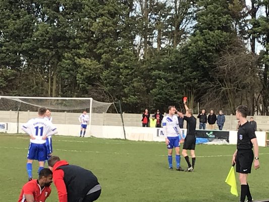 However, Bearsted were not going to stay alive for much longer as captain Rob Lyall picked up a straight red after a horrific tackle! Walker would’ve been clean through on goal but a rash challenge by Lyall brought him down, resulting in the straight red on the 31st minute and with just a minute gone after this, Chatham had their second on the 32nd. The red card seemed to have shaken Bearsted as they couldn’t defend against Harrison Carnegie who took a shot on from outside the box which flew straight into the back of the net.