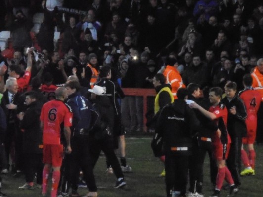 A jubilant Dover manager, Chris Kinnear, said afterwards “magnificent wasn’t it? I am excited, and I don’t get excited over many things, but I think we deserved it. We didn’t play great, but the lads stayed in the game, and we were always liable to nick a goal. We’ve worked a lot on deadballs, and it fell perfectly for Connor.”