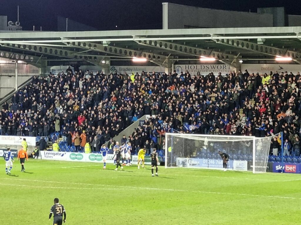 Chesterfield’s breakthrough came on 36 minutes when patient build up play around the box eventually saw Dobra let fly from 25 yards and the ball deflected off Kamarl Grant and past Smith to make it 1-0.