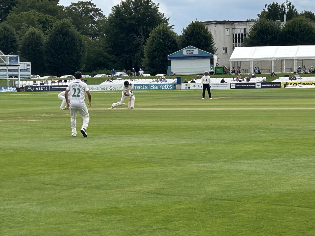 He and Compton made further inroads into trying to reach then exceed the visitors’ total and another three milestone over from Ahmed appeared possible with six overs of the day remaining.