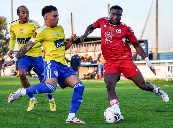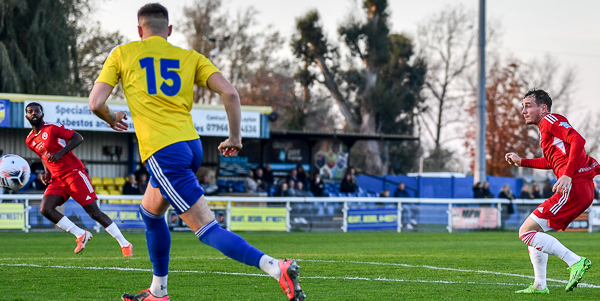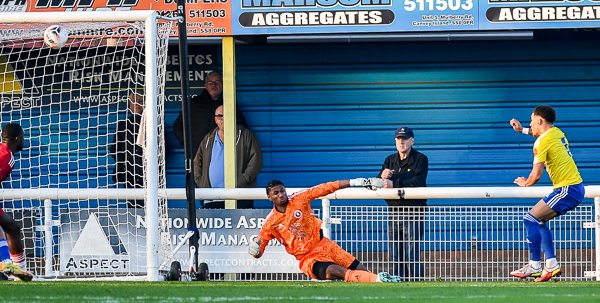 Ten minutes before half time, the Beachboys drew level. Theobalds’ low cross was back-heeled by Mo Bettamer, and it fell into the path of Louis Ramsay who thrashed it home from inside the six-yard box.