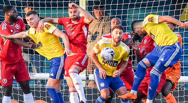 Former Bromley striker Ben Williamson thought he had put the hosts ahead with a header, but James Dunne headed off the line before Myles Roberts struggled to hold a Theobalds shot but scrambled to claim it before it got too far away from him.