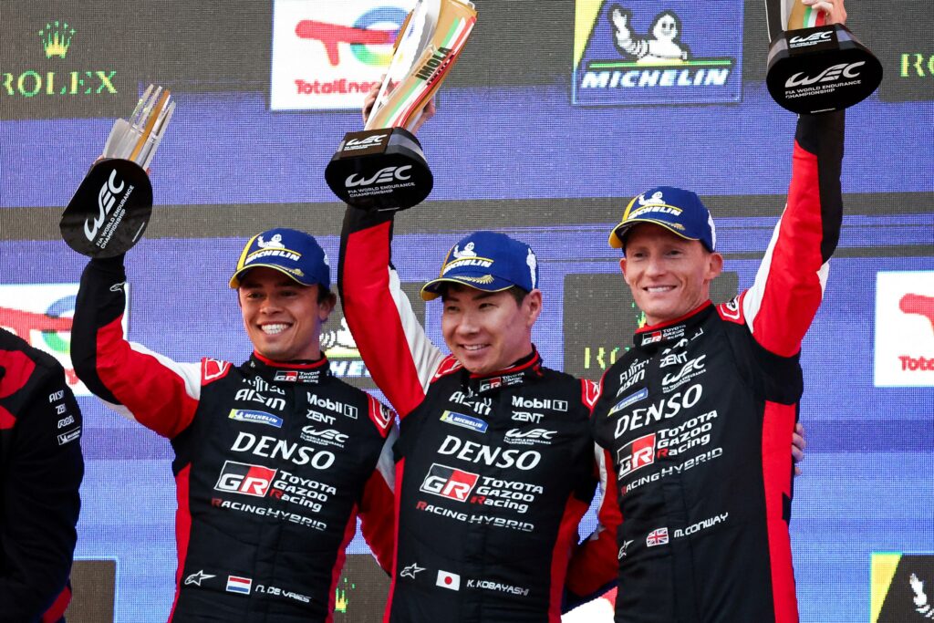 Mike Conway, Kamui Kobayashi and Nyck de Vries took a tense victory in the #7 GR010 Hybrid in changing conditions thanks to faultless driving and intelligent strategy on a day of twists and turns among the 19-strong Hypercar field.