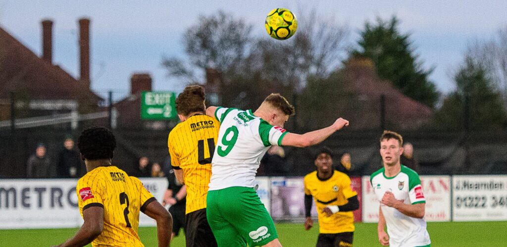Cray came the closest in the 19th minute when Frankie Raymond’s ball into the box was met by the head of Jeche but went past the right post. Bognor though were looking comfortable in possession with Matt Burgess having a good game and Dan Gifford who has a good goalscoring record against Cray was played through down the right of the area but the ever consistent Darion Dowrich did well to snuff out the danger and the ball went behind.