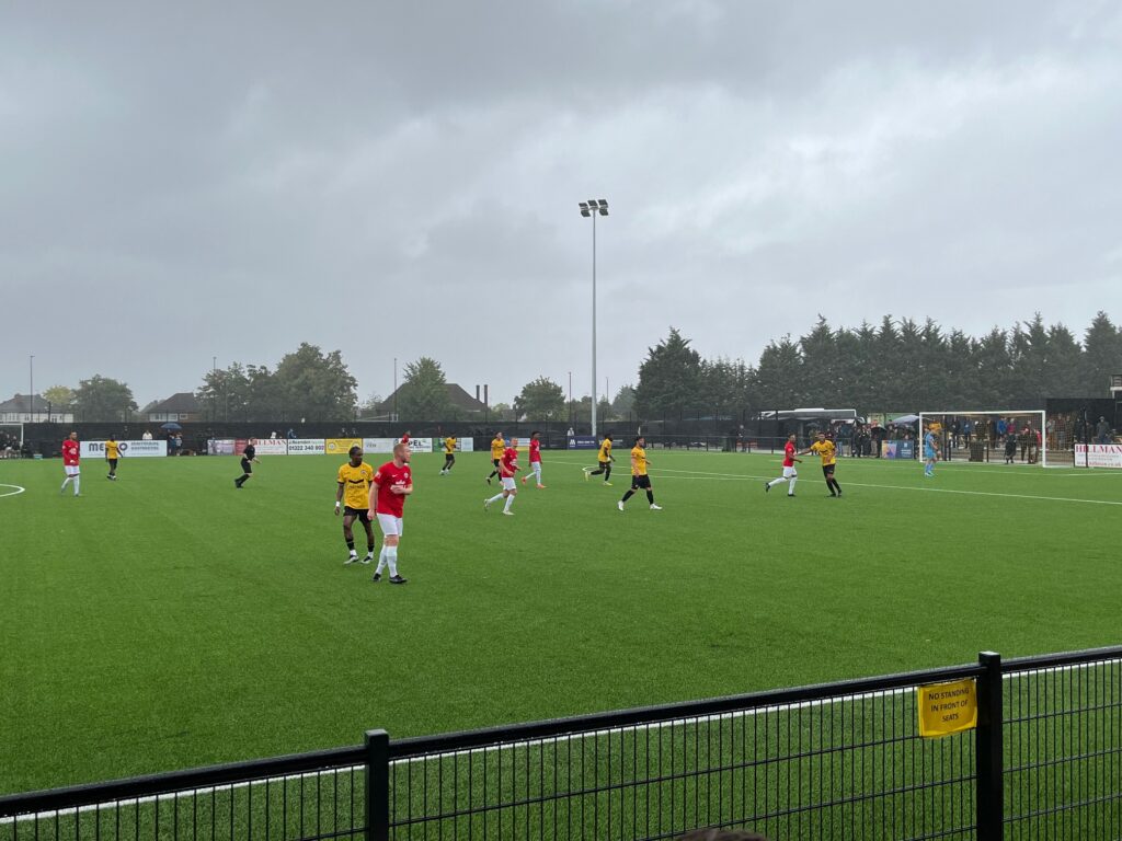 Bassett went close again as Shaun Rowley made a good save. After Wand’s winger Lateef Adaja had a shot saved by Toby Bull, the visitors then extended their lead on 19 minutes when Marcus Sablier (who had also been on loan at Cray previously) played in Bassett who coolly slid the ball past Rowley for 2-0.