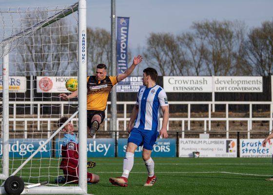 In the first ever meeting between the sides at Hayes Lane, a tight and tense first half caught fire before halftime when on 41 minutes Haywards Heath went in front when Karl Akehurst was on hand to follow up from close range when Melford Simpson’s header came back off the crossbar. Two minutes later though Cray drew level when Sean Roberts ball into the area was helped on by Freddie Parker and Taylor fired home from 6 yards.