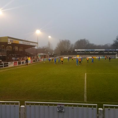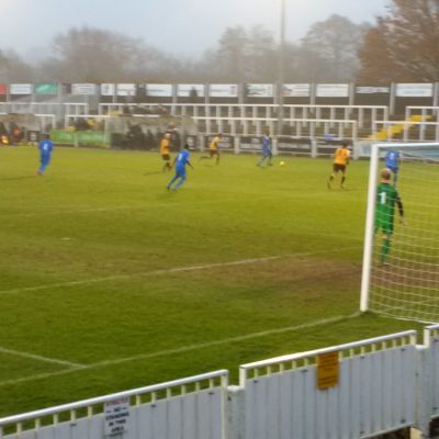 From there the visitors dominated the play, Lorraine was again on hand to make a saving block from Marcus Elliott, but the pressure paid off on seventy nine minutes when Laste Domabaxe crossed for Elliott to head home at the near post and put The Wasps in front. The closest Cray came to pulling level was a free kick that was cleared after Scott had been fouled out wide, but as they threw players forward the visitors broke quickly from the back and as Kwaiye raced into the Cray box Timi Osibodu sent the pacey striker sprawling for a clear penalty. Elliott sent Blue the wrong way from the spot and it was game over, sealing a remarkable comeback for the Sussex and their band of fans behind the goal.