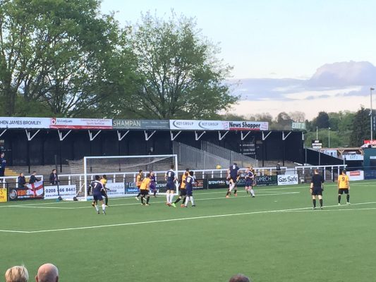 Cray Wanderers suffered play off semi final heartbreak at Hayes Lane on Tuesday night as they lost a seven goal thriller to Walton Casuals battling with ten men for an hour of the match and losing key players to injury.