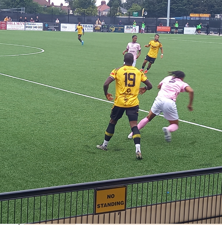 Wingate & Finchley though had a good fifteen minute spell after that. Firstly, after a back pass was latched onto by Johnny Allotey who seemed destined to score but was thwarted by a great tackle from Quade Taylor. Then from a corner the ball came to Cracknell but his header was blocked but Harry Seaden didn’t have too much to do.