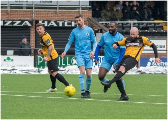 The return of the March winter over the weekend saw a shiveringly cold wind during the first half and incessant steady snow in the second but there was much to admire about the quality of the football on show with Cray going into a 3-0 lead after 40 minutes through two goals from Charlie MacDonald and a Karl Dent strike before Horsham threatened a comeback pulling two goals back with over half an hour to go. However, Junior Dadson grabbed his third goal of the week to make it 4-2 before Horsham scored again with the last piece action of the game in the third minute of injury time.