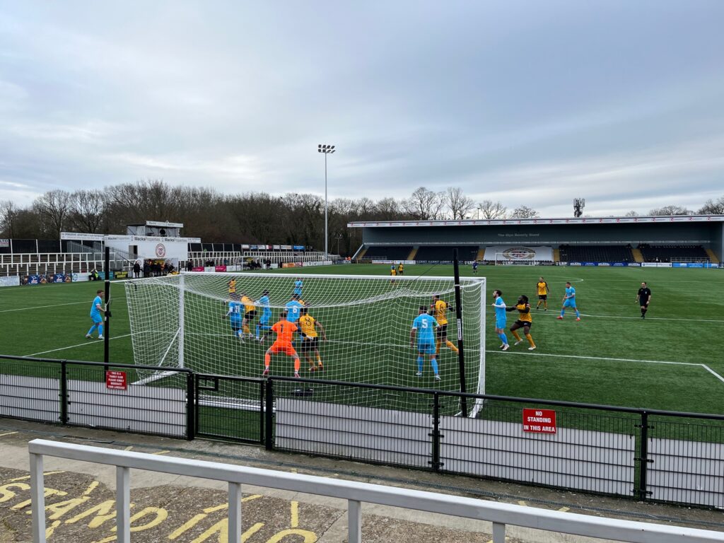 With the Wands now well on top Harrison Sodje then crossed for Yahaya Bamba who headed the ball against the post. Potters Bar briefly pressed with Cheyce Grant going close twice with headers from set pieces.