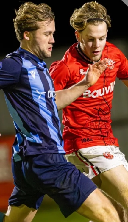 The home side could have then doubled their advantage as the magnificent Harrison Mayhew powered a header just wide of Harvey’s left post, before Ayoola almost turned villain as he lost possession to Chaynie Burgin on the edge of the home box, but Holmwood produced another smart save to deny the Chatham man.