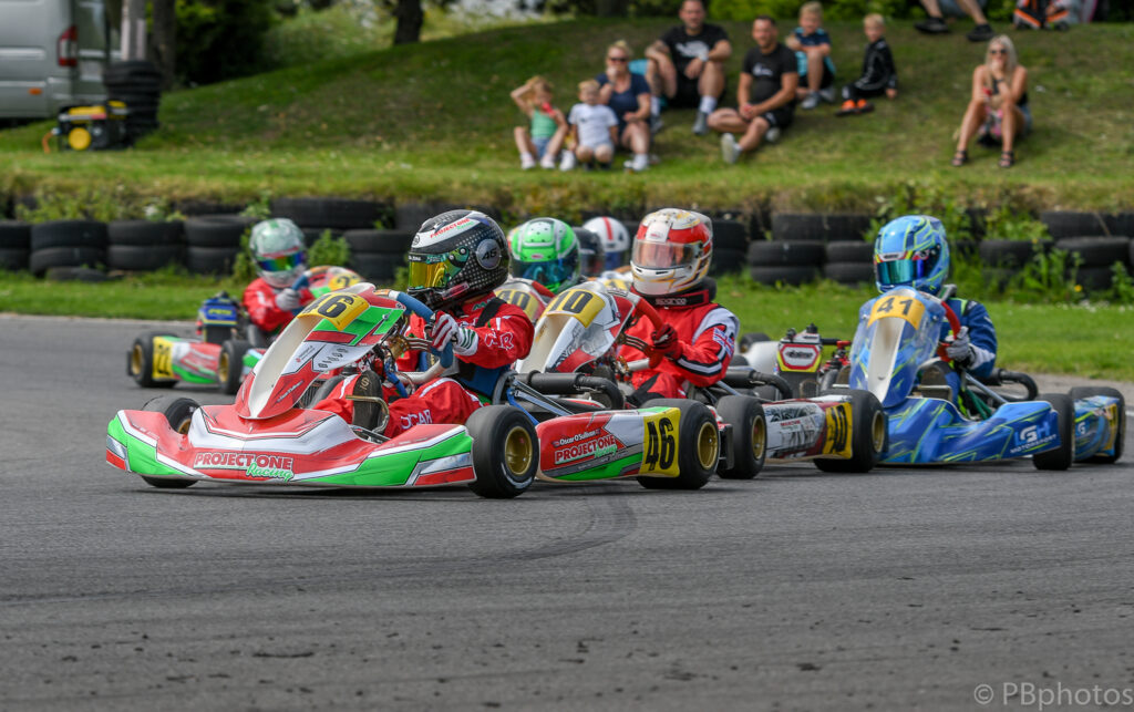 22 karts appeared for the fiercely competitive Junior Club Max class and securing the pole for the final was Project One’s Jamie Perilly. Sitting next to him was Declan Russell on the front row, next up was Max Lee and Joshua Patrrick on the second row, 5th & 6th on the grid were Jai Lawrence & Brentley Sims, Blake Noble & Sebastian Morgan completed the 4th row, Ben Cooke and Matthew Copsey rounded out the top 10 on the grid.