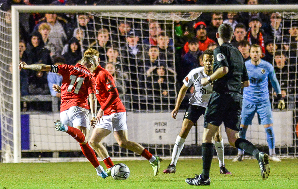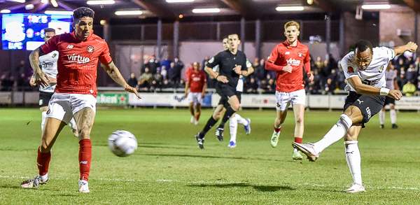 Coming into the game, the local neighbours were fifth and sixth in the Vanarama National League South and, with nearly two and a half thousand spectators in the ground, it was always going to be an edgy affair.