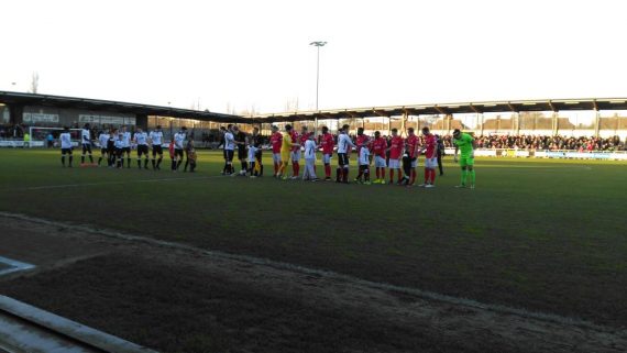 Vint, buoyed by his long-range goal in the Trophy against Dover, tried something similar, although Nathan Ashmore had little trouble in holding the bouncing ball. The keeper was caught out by a 40-yard backpass from Kenny Clark moments later and handled as the bounce threatened to take the ball over his head. The indirect freekick by Elliot Bradbrook hit the charging wall and Vint’s returning header dropped over the crowd of players into the net, only for Duane Ofori-Acheampong to be flagged offside for interfering with the retreating Ashmore.