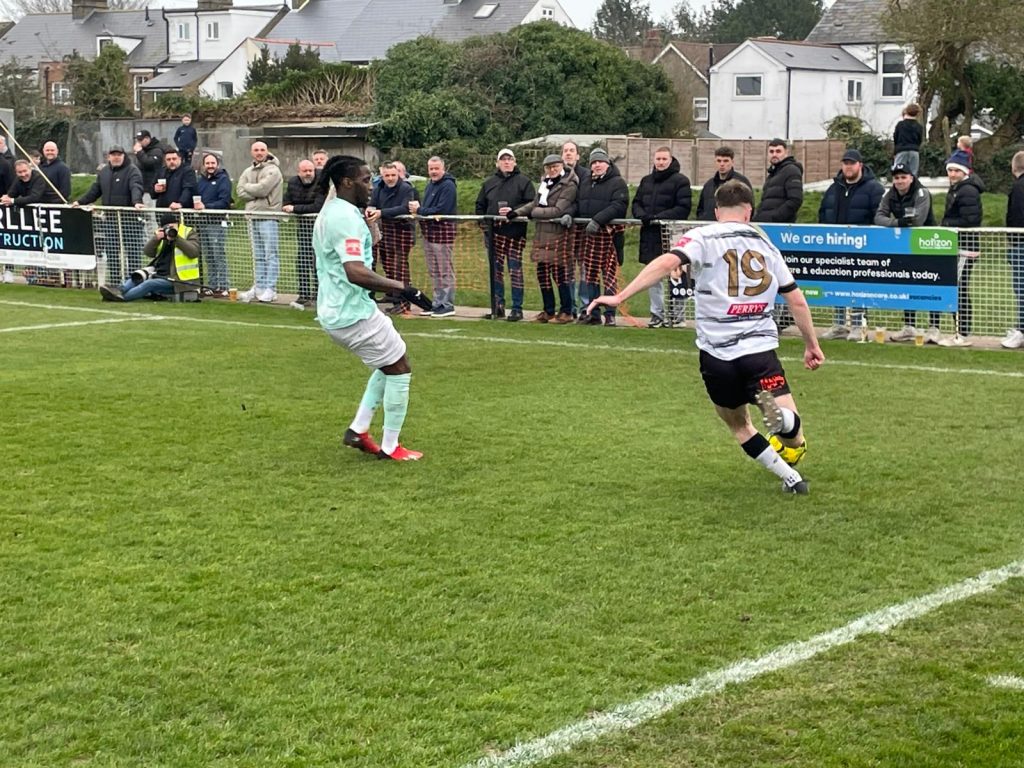 After a cagey opening, Deal started to grow into the match and created the first chance of note on 10 minutes. A flick on from Jamie Kennedy found Rory Smith on the edge of the box, but his shot cleared the crossbar. The home side kept the pressure on but always had to be weary of the three-pronged attack of wingers Brandon Pierrick and Williams, along with front man David Bremang.