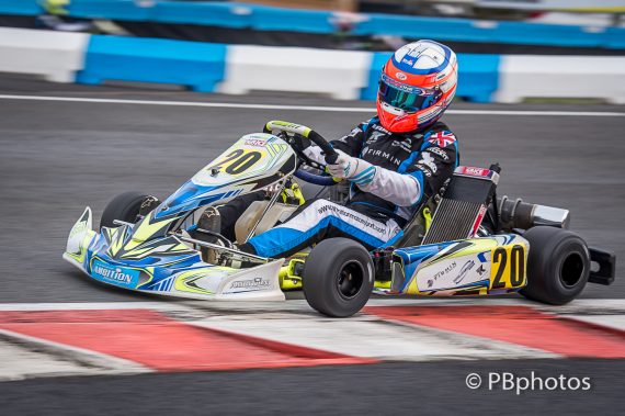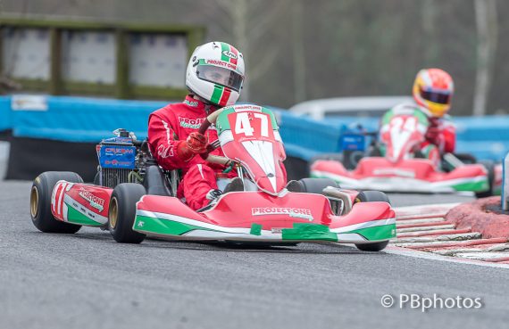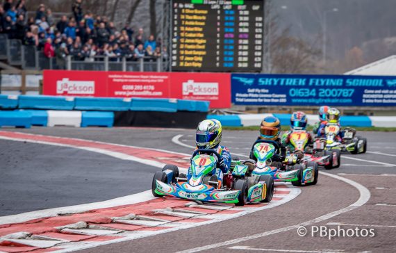 Project One drivers have always been to the fore of the Junior Rotax class at Buckmore Park and Sunday’s final carried on the trend with James Wharrier coming out on top of the 10 drivers. He led throughout looking very comfortable once his teammate Ben Fayers had slipped back with a misfiring engine. Things might have been different though if Oliver Appleby (KPi) had started further up the grid from the beginning. Appleby loves to charge through the field and after a heat penalty found himself with work to do. He set the fastest lap on his way to 2nd place and managed to trim Wharrier’s margin of victory to 0.73 seconds. Last month’s winner Harry Ayers, made it a Project One – 1,3 & 4 with a solid 3rd place behind Appleby. Conrad Collinson (5th) and Thomas Rotherham (6th) had mixed days, both showing good pace but finding themselves at the wrong end of the top 6 at the finish. The final championship positions were Appleby, Collinson and William Newnham.