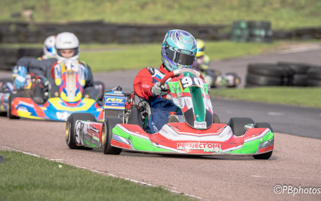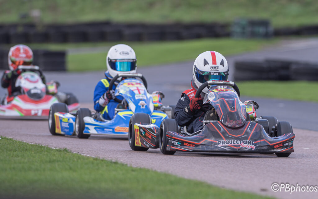 The Honda Cadets opened the Finals on Sunday afternoon and provided a thoroughly entertaining race, with 3 drivers fighting over the podium positions from the standing start. The morning Heat win went to Riley Taylor, his first victory at the circuit, before Jack Cope topped the five entries in the Pre Final with Noah Clare taking 2nd from Taylor in 3rd.