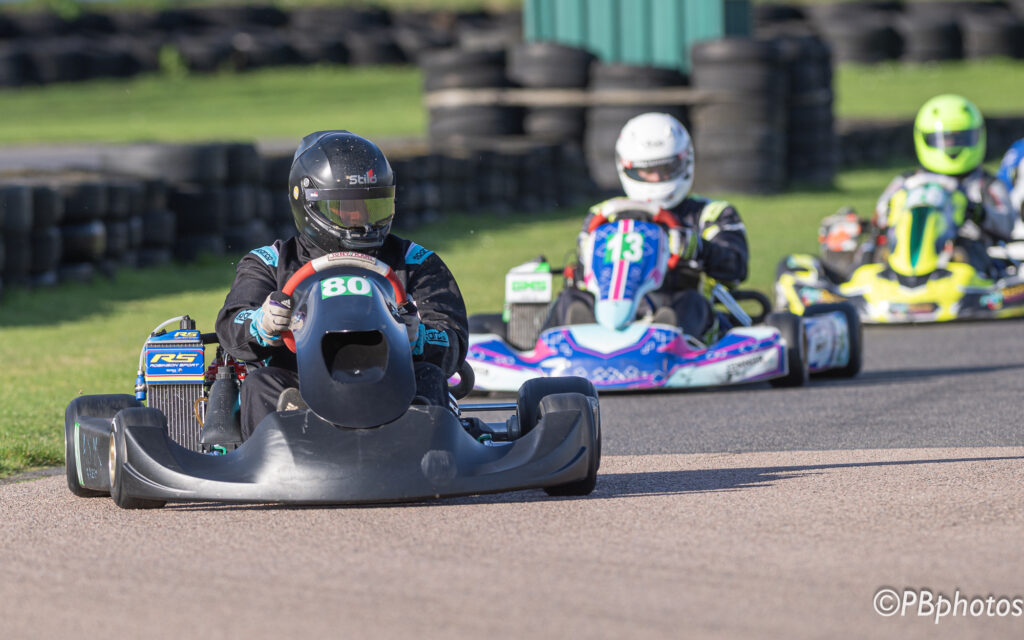 The Senior Club Max class was as fiercely competitive as ever on Sunday, Josh Pullen topped the wet qualifying session and then won the morning Heat. He then held on to win the Pre Final on a drying track, with his wet tyres finished by the end, Ciaron Edgson had gambled on slicks and was catching Pullen hand over fist towards the end of the race, before just falling short.