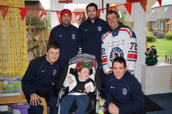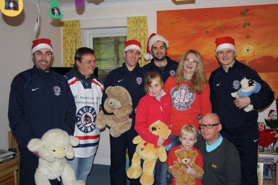 Head Coach Kevin Parrish and Dynamos owner Jackie Mason were joined by players Justin Noble, Peter Vaisanen and Adam Copland as they handed out the toys to the children at the hospice.