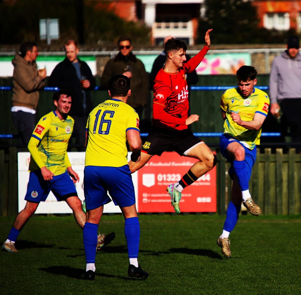 After the break, Eastbourne were awarded a second spot kick after Roger was brought down on the box and the Eastbourne striker’s luck was really in – Grosshart plunging to his right to make a superb save but the ball looped straight back to the taker who looped in the rebound.