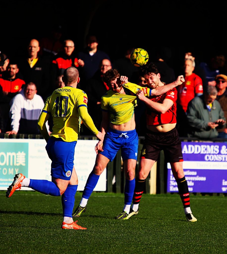 Problem for Sittingbourne was that Ollie Davis’s drive beat Jamie Grosshart only to be magnificently turned a side by Ben Swift and as Swift is a central defender meaning that referee Wootten had no option but to show the red card.