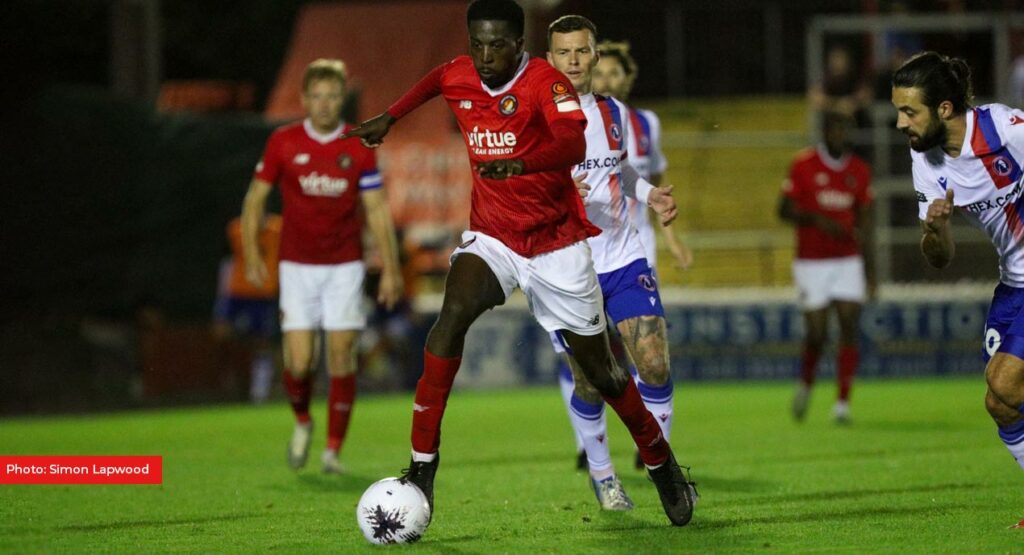 It was mainly a slow-paced and scrappy first-half as Chapman had another shot saved by Harrison Male and Amoo continued to try to create from the right, his delivery for Nathan Odokonyero not quite coming off. The Fleet had the best chance when they almost found the opener on the brink of half-time. Amoo’s swift run from the halfway line laid a ball into the path of Edser but the midfielder was stumbling as he took the shot and he pulled it just wide with the Dorking defence playing catch-up.