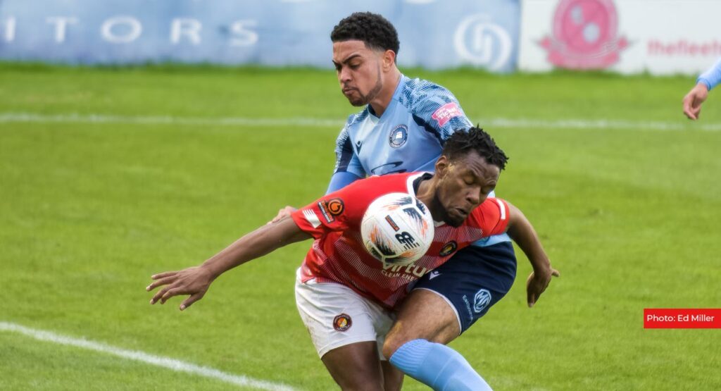With four minutes left, Fleet thought they’d got the elusive equaliser. A couple of exchanges between Edser and Coulthirst came to Tanner and his 20-yard shot was parried by Worgan into Coulthirst’s path. The striker was quick to react and convert the loose ball but up went the offside flag.