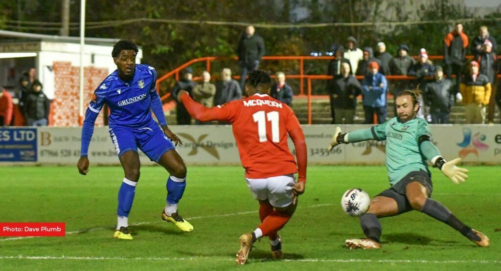 Mark Cousins was called into action moments later when a shot from Mbunya Alemanji forced the Fleet keeper to tip the ball on to the crossbar.