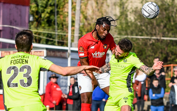 McManus turned and shot but Moulden tipped over. Then, from Moore’s resulting corner, Josh Taylor headed wide of the near post. Moulden made a great double save when the Ebbsfleet defence was again cut open. First, he saved well from McShane then he recovered to keep out a shot from Josh Taylor.
