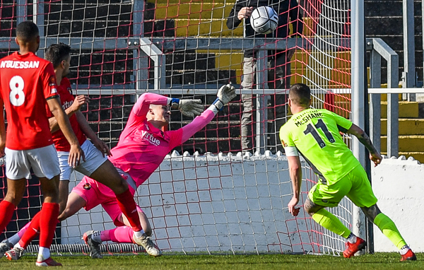 Moulden saved Philpot’s header before making another great save from McShane just before half time.