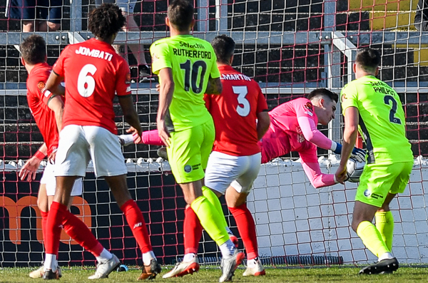 Although the Fleet had late opportunities, had it not been for goalkeeper Louie Moulden, they would have been beaten long before then as the visitors impressed with their quick passing and clever movement.