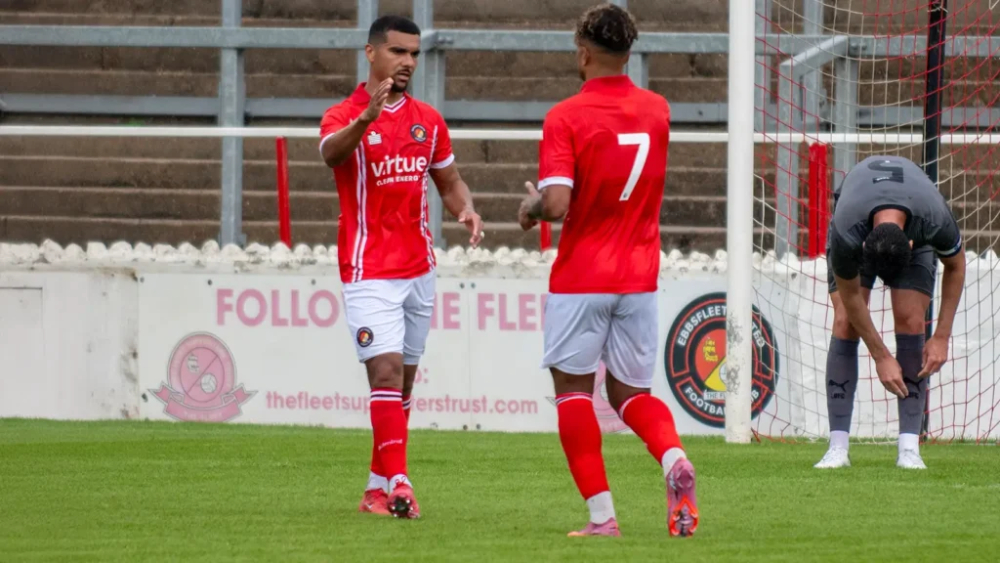 The Fleet began to up the pressure on the visitors in their best spell of the game with dangerous crosses from out wide as George Moncur tried to find a way through against his old club. On the opposite flank, Ben Coker’s delivery was met by Appiah whose effort was just wide, while Moncur caught Cahill out of position and forced the goalkeeper to make an uncomfortable tip over the crossbar.