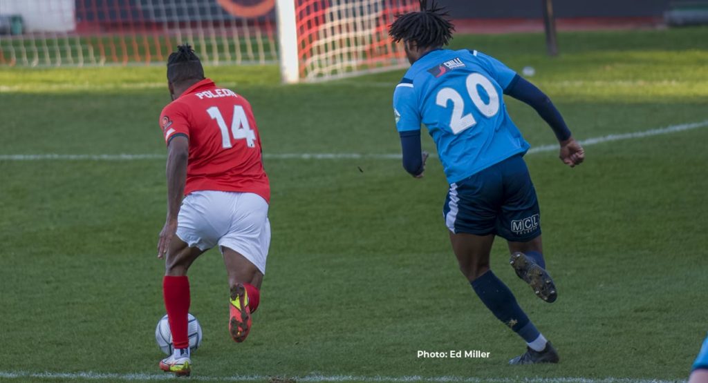 Poleon, on at half-time for Romain who’d been booked and spoken to the by the referee in the first-half, carved out a couple of excellent opportunities. The first came on 57 minutes when Tanner broke through the middle and Poleon’s confident run between two defenders ended with him driving a shot across goal.