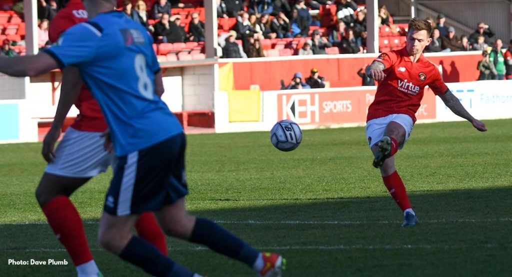 The visitors had a number of attempts on goal but most of them off target and lacking real power, so Louie Moulden was barely called into action. Chris Whelpdale and Charley Kendall both sent low shots across the Fleet six-yard box but they were harmless enough efforts.