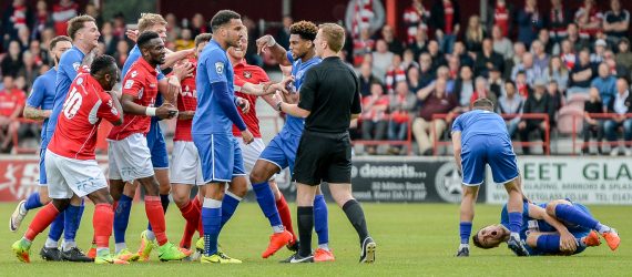A sell-out crowd of 3,134 saw Chelmsford come closest to scoring on 16 minutes when Shaun Jeffers’ shot from 20 yards deflected just wide.