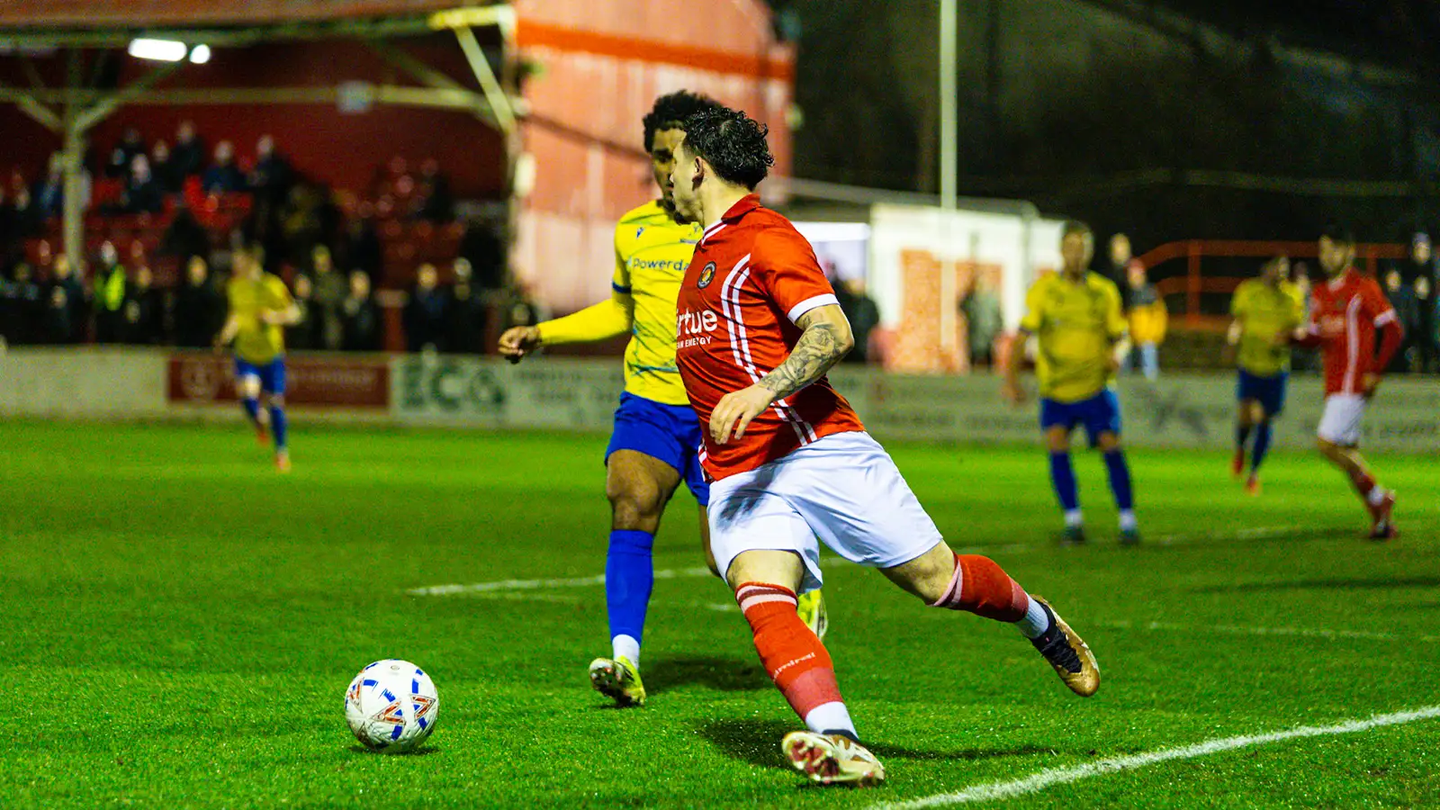 Fleet fans were appealing for a penalty minutes into the second-half when Toby Edser went for a cross but was bundled over by Xavier Benjamin, who had picked up a yellow card towards the end of the first 45.