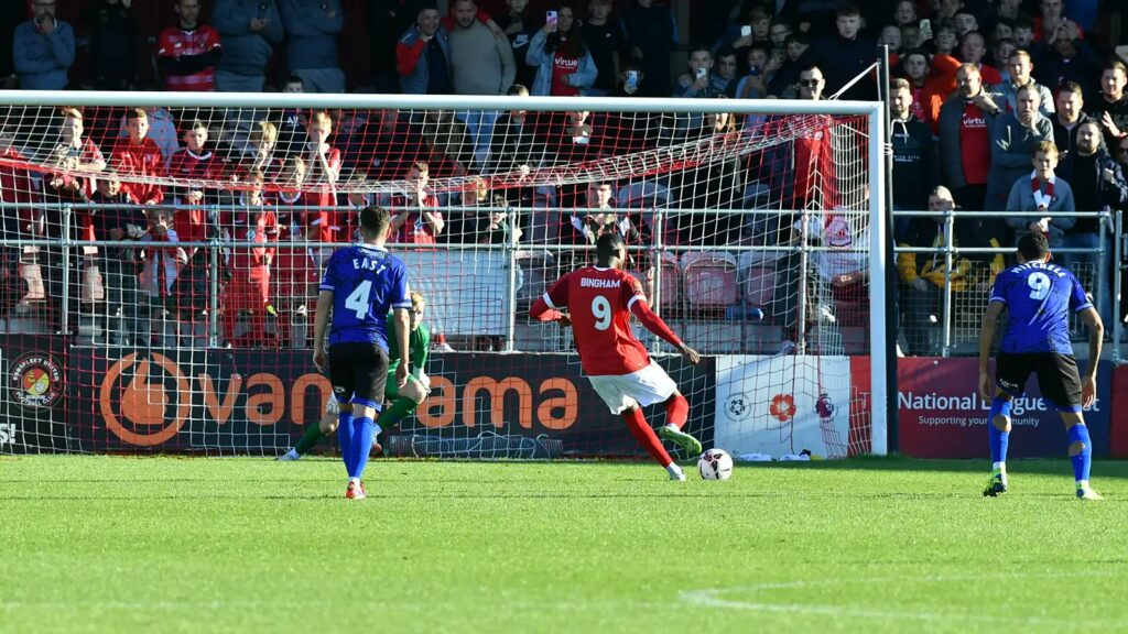 That would be the only chance of the first half for the Fleet but the home side looked like they were digging in just as Rochdale found the breakthrough. It came in the 36th minute when Conor McBride gave the Fleet defence the slip and he was able to pass the ball along the box, allowing Tarryn Allarakhia space down the left to let fly and curl his effort into the top corner with great technique.