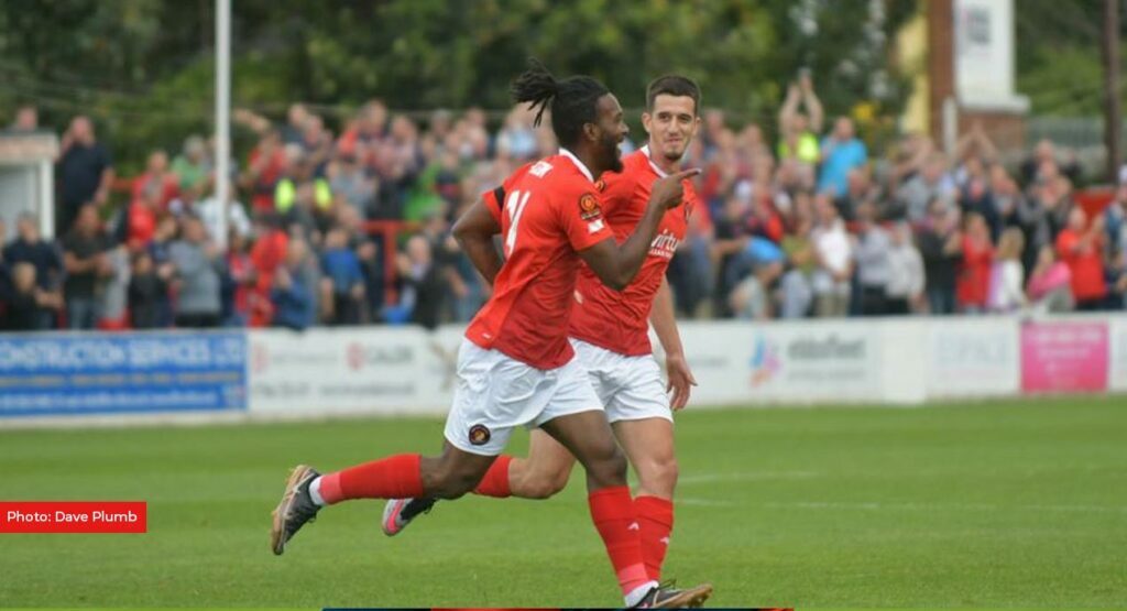 Harriers were largely confined to chasing Fleet’s possession game and their only opportunities were watched over and wide by Mark Cousins. Chapman’s skills down the left almost opened up the defence for Poleon to capitalise on 18 minutes but Alex Penny headed clear.
