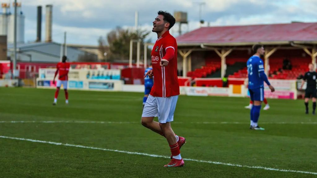 Two became three by the 39th minute and this time it was Jake Hessenthaler on the scoresheet.. Ben Coker whipped a delivery from a corner which fell to the Fleet’s No.4 at the far post. He might have shot first time but with the ball still within range, he was able to smash it into the roof of the net with his second touch.