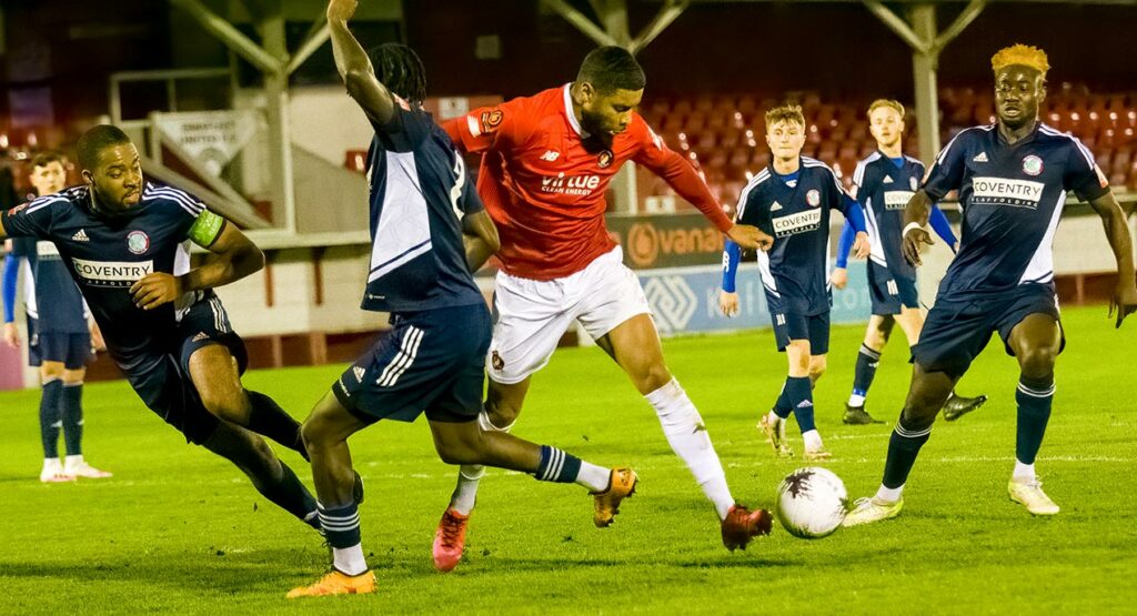 Two soon became three and it was a first hat-trick in Fleet colours for Samuel three minutes before half-time when Sterling-James’ ambitious cross from the right picked out the forward who chested the ball home to put the hosts out of sight before the break.