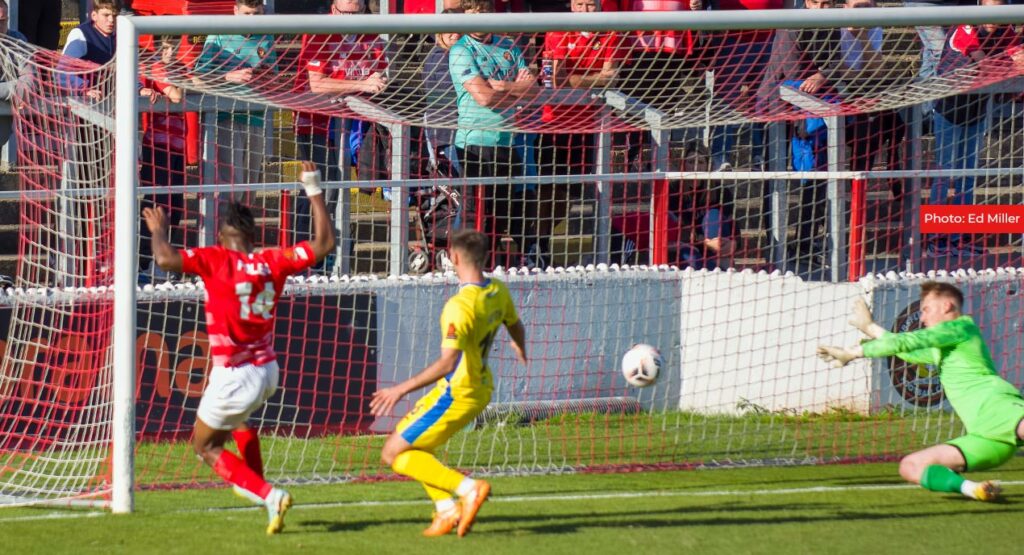 Taunton were showing why they had such a mean defence as they repelled two more quickfire attacks. On two minutes some great skill by Luke O’Neill got him clear towards the byline and his cross to Poleon was blocked before Rakish Bingham stabbed it just wide.