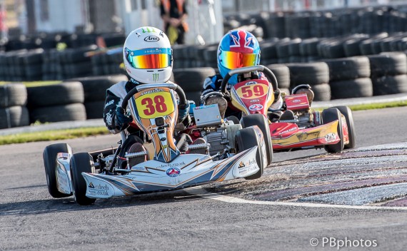 The Honda Cadet and IAME classes ran together although with a split grid and both provided excellent races. In the Cadet final, Louis Horsley and Leon ‘Frosty’ Frost paired up and pulled away from the rest, running bumper to bumper for the full 15 lap distance. Frost did manage to head Horsley a couple of times near the end of the race, but when the flag fell, it was the delighted #38 kart of Horsley that was in front, only 0.179 of a second separated the two at the finish. In an almost mirror image the battle for third between Ethan Barford and Ronnie Mansfield raged throughout the race, with the Teambase kart of Barford just snatching the last podium spot over Mansfield. Visiting DNL driver Corbin Newbury briefly held third over the first half a lap, before being gobbled up by the squabbling Barford and Mansfield in one fell swoop along the fast back straight, eventually finishing 5th with Jack Spickett not far behind in 6th. CJ Moran held a close lead over Jacob Baldry until a spin at the chicane on lap 5 ended his chances of victory in the IAME class, Baldry winning by 6 seconds at the end of the race.