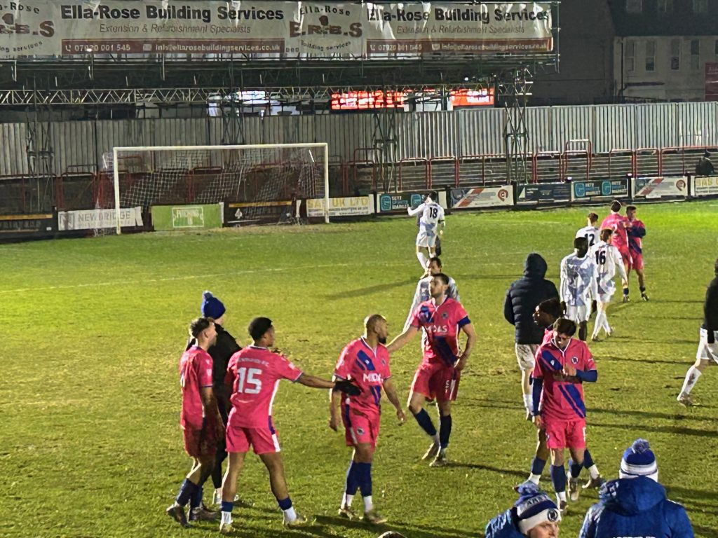 Sam Stace missed a great chance to score the crucial second when firing wide of an empty net from wide left, thirty five yards out, when Alexander was left stranded outside his goal. It was then Erith’s chance to come close when Scott Jarvis crossed deep just out of the reach of a stretching Harry Day.