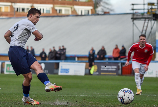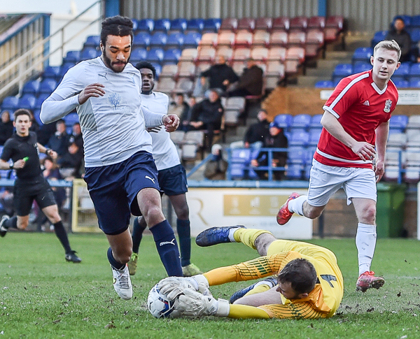 When they had their first meaningful attack, it was the Deres who went ahead. Freddie Cray was found in plenty of room in the penalty area and, as he tried to turn to get a shot away, he was brought down. The ever reliable Hawkins stepped up and sent James Tonkin the wrong way. Danny Lear came close to making it two with but Kane Smith cleared his effort off the line.
